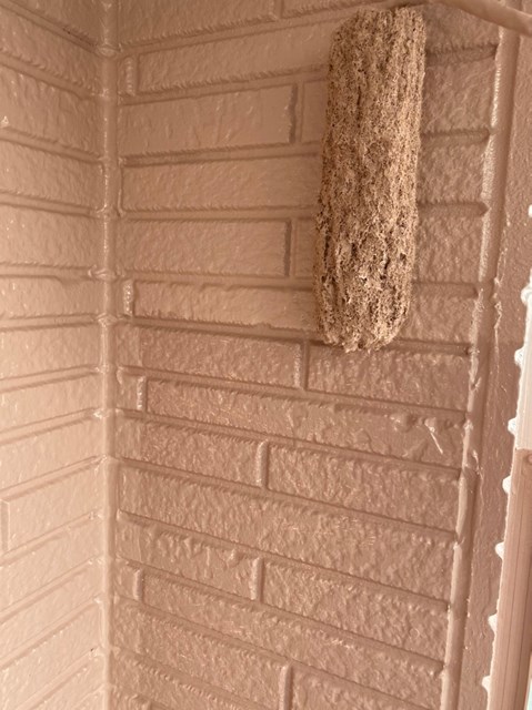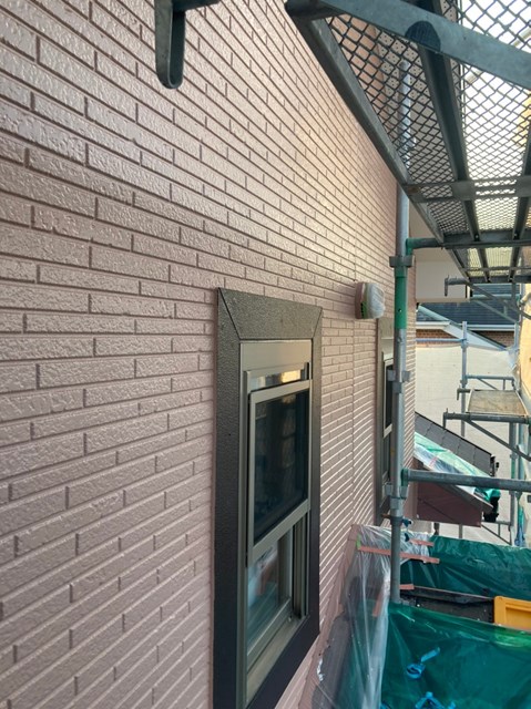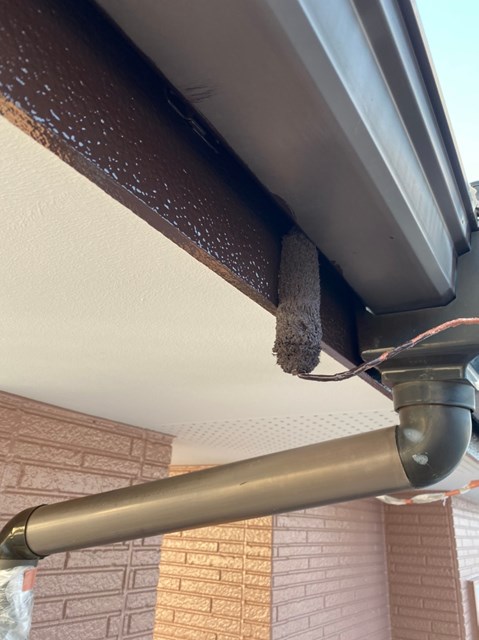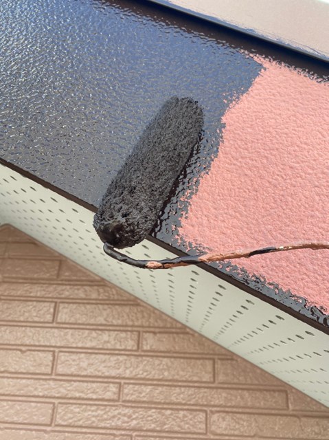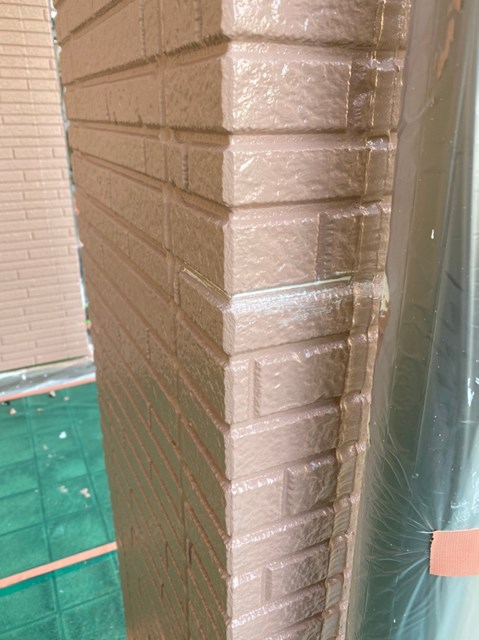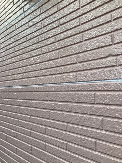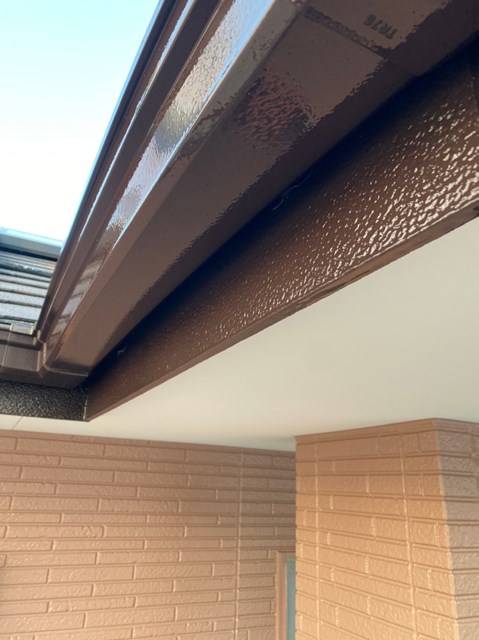 乾燥後に茶色のサイディングの上塗り塗装を行いました。