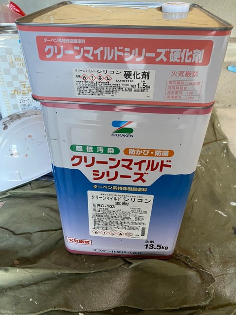 こちら住宅付帯塗装において特に使用されている2液型弱溶剤シリコン塗料です。