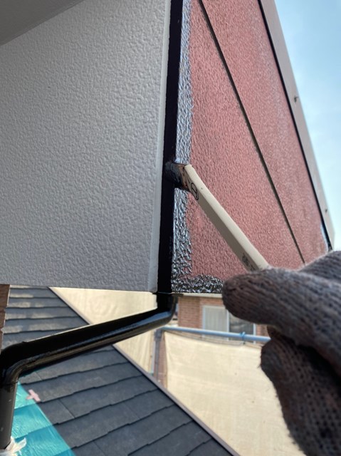 上塗り後に再度隙間補修を行い、補修箇所は最終タッチアップで塗装します。