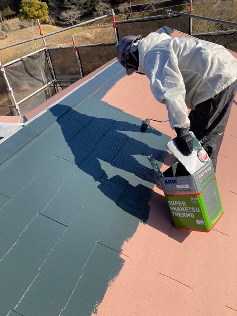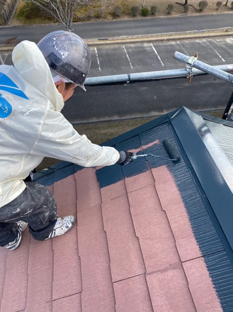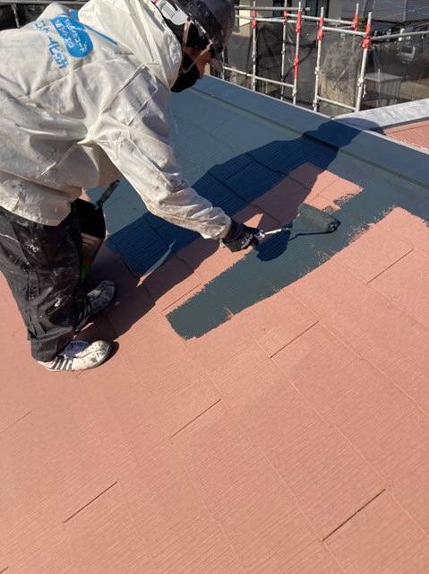 屋根の中塗りは本日、大屋根のみ塗装をしました。