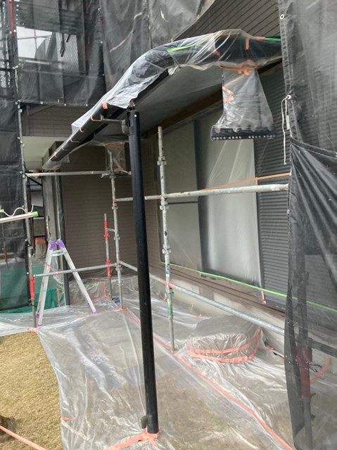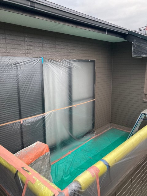 養生の撤去、付帯部塗装、屋根の上塗り、雨戸のケレン、状況を見て雨戸の塗装