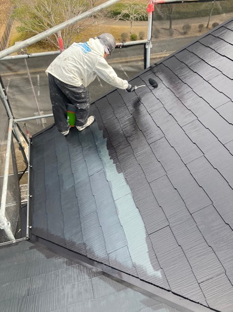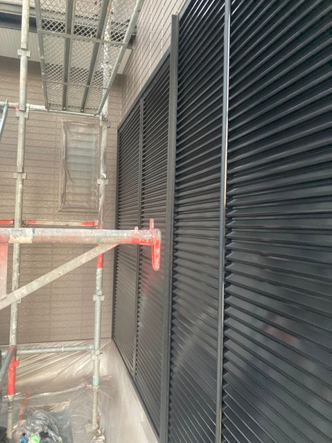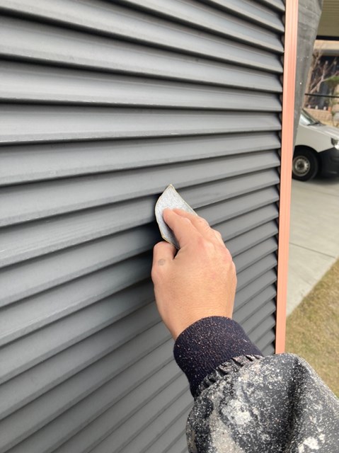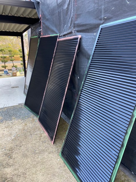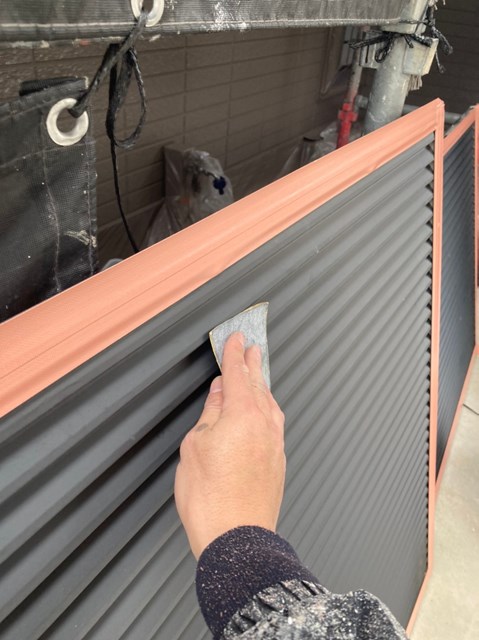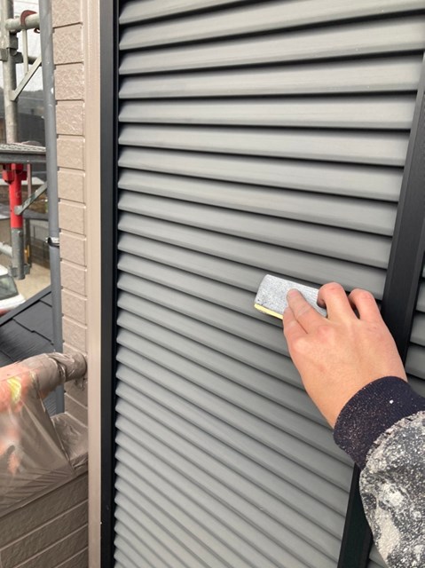 本日は雨戸のケレン、雨戸の塗装、大屋根の上塗り、一部付帯部塗装を行いました。