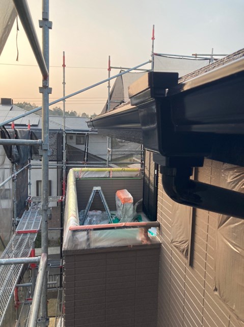 養生の撤去、付帯部塗装、下屋根の上塗り、各所タッチアップ、掃除