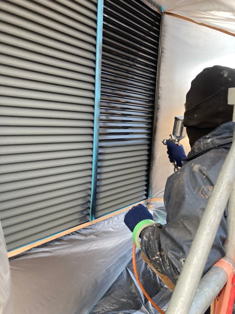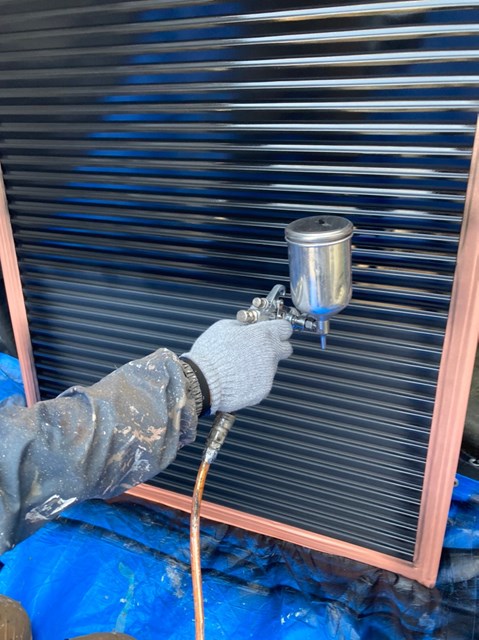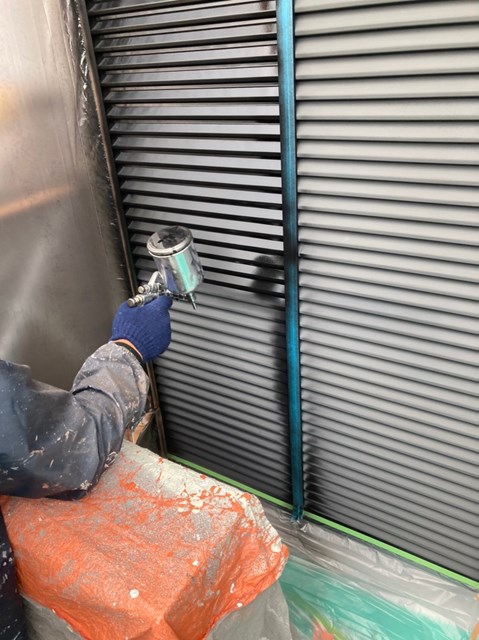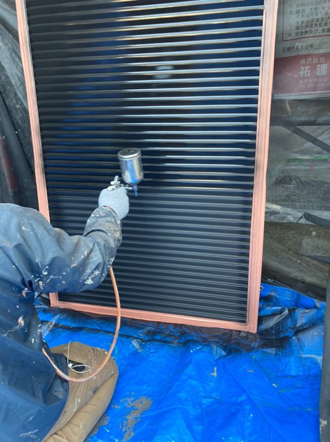 雨戸はケレン作業を行った後にコンプレッサーを使用ししっかりと塗装して行きました。