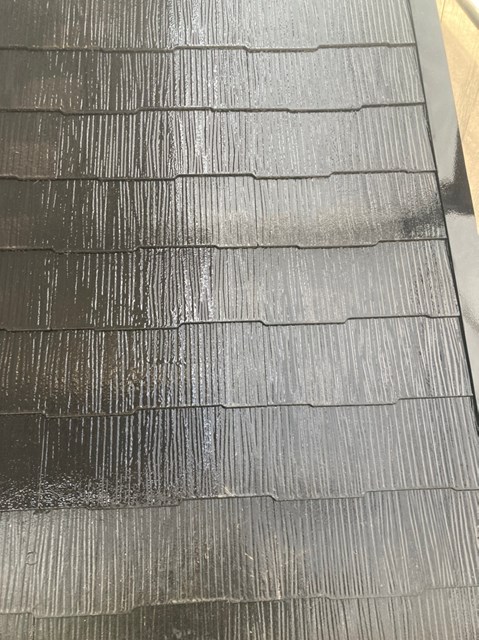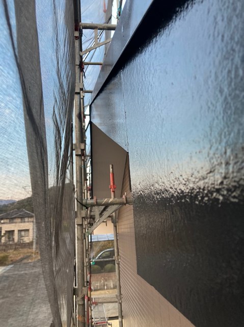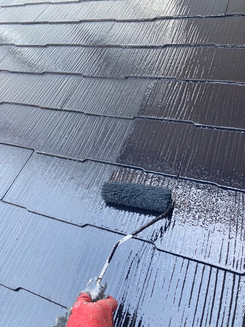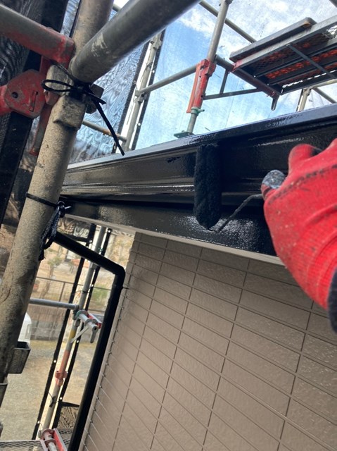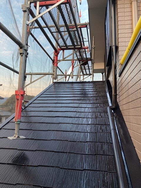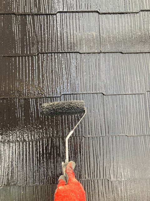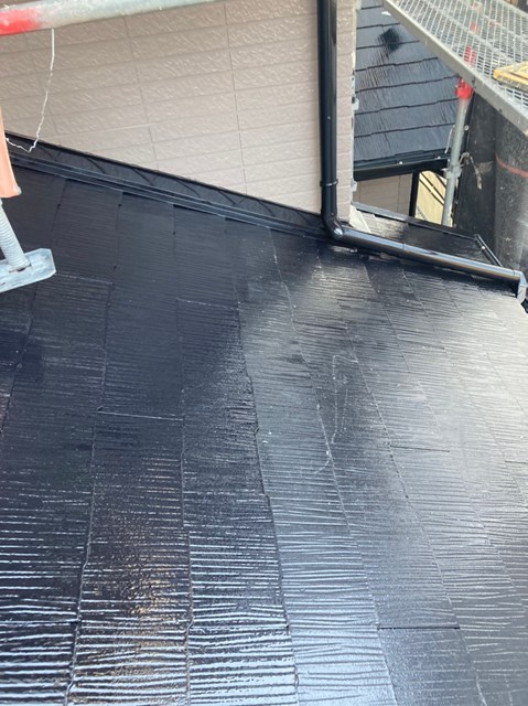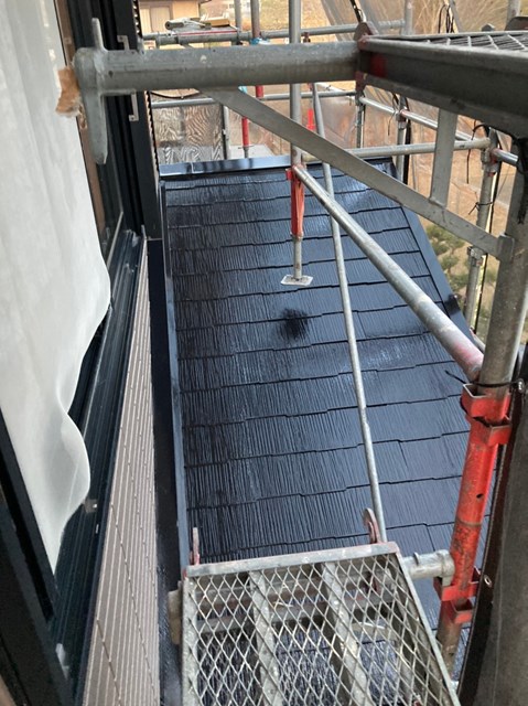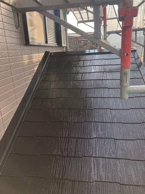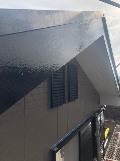 本日は養生の撤去、下屋根の上塗り、付帯部塗装を行いました。