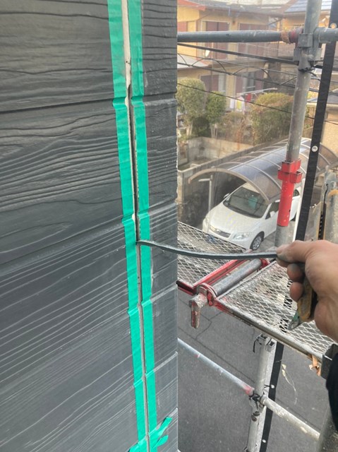本日はコーキングの撤去、打ち替え作業を行いました。