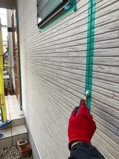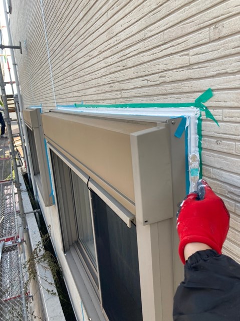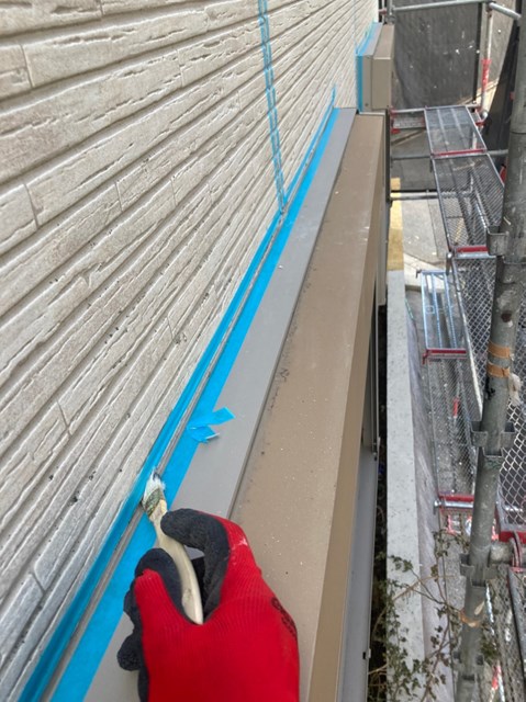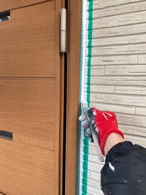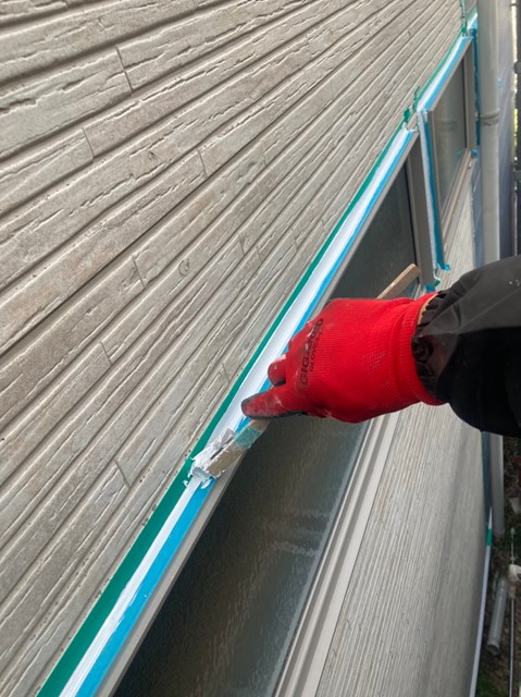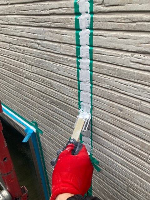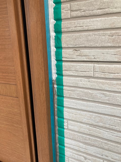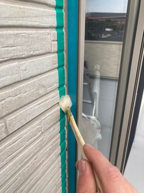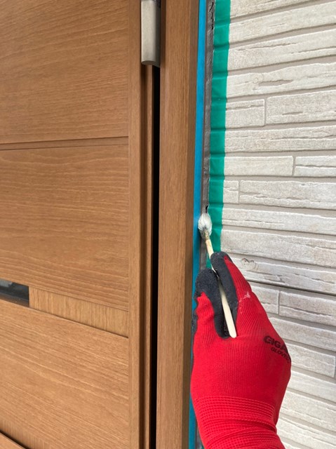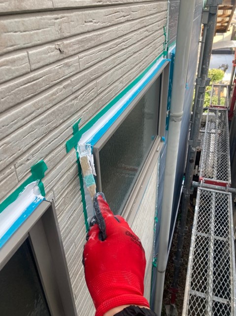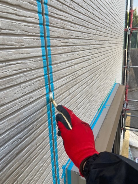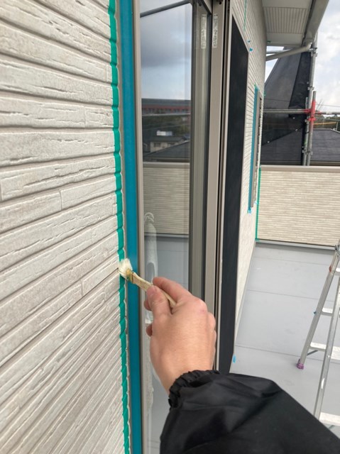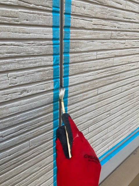 密着性を高めてからコーキングの打ち替え作業を行いました。