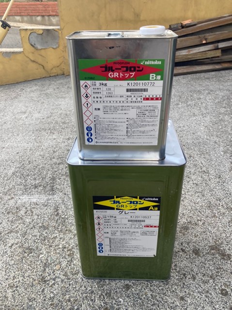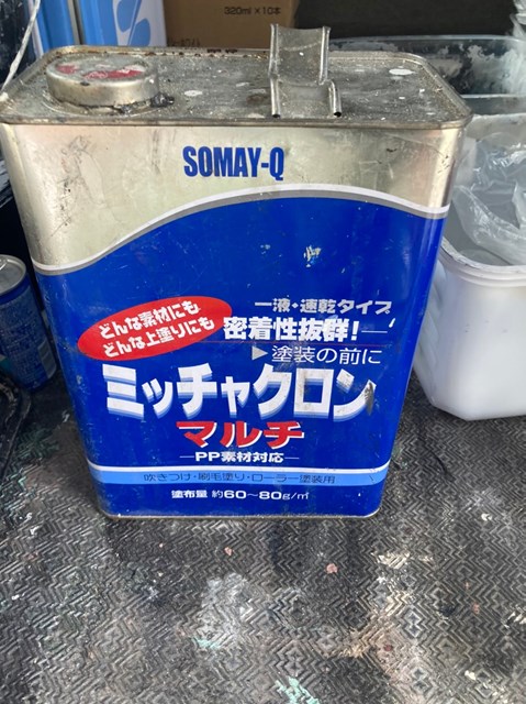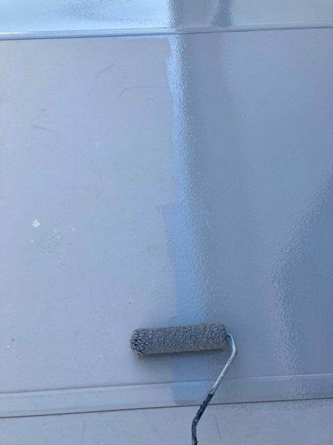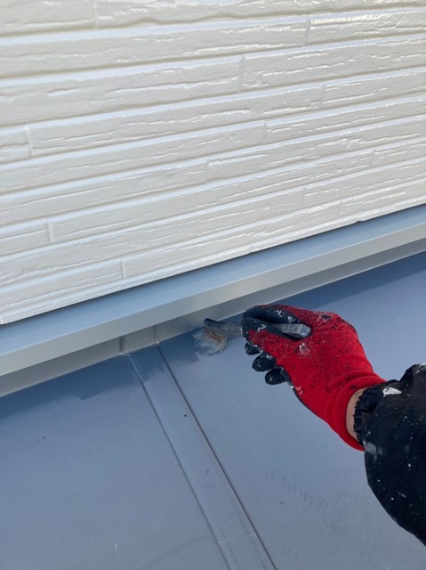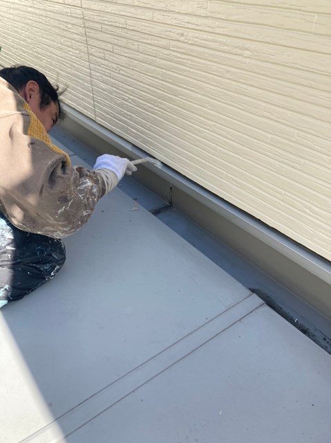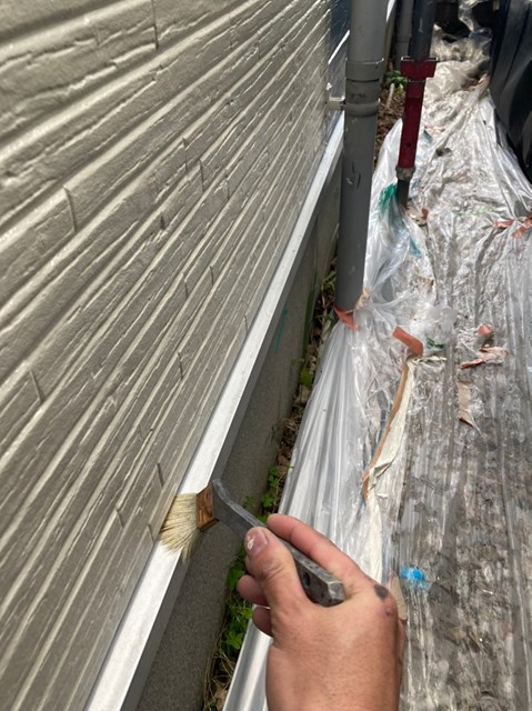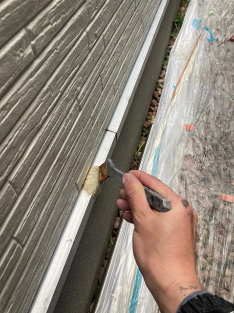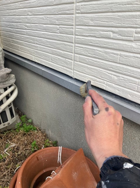 水切りの部材は塗料の密着が悪い為、ミッチャクロンと言う接着剤の役割りを果たす下塗り材を塗って行きました。