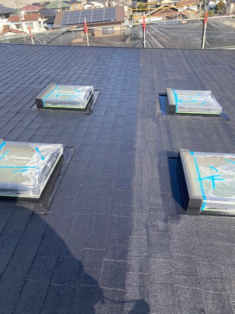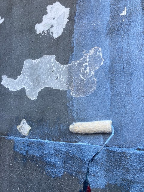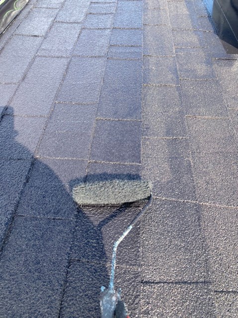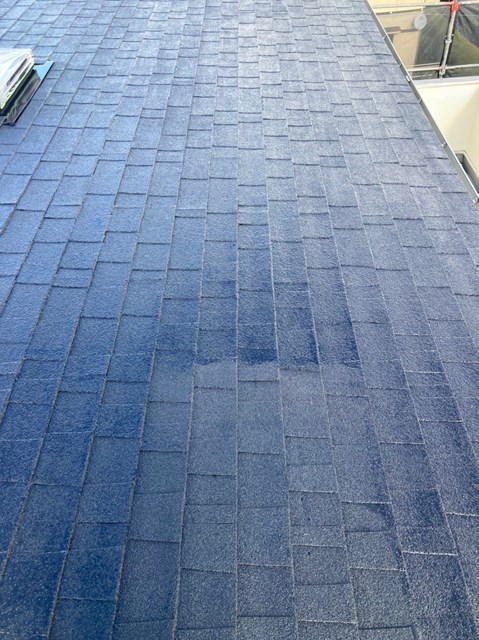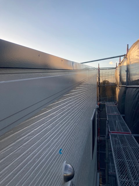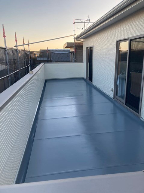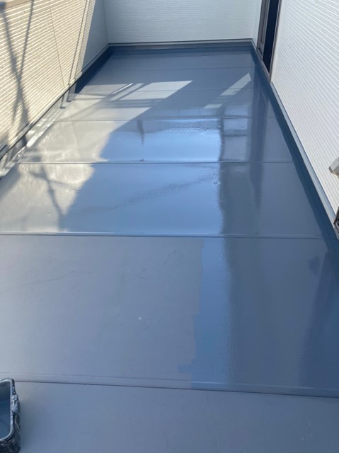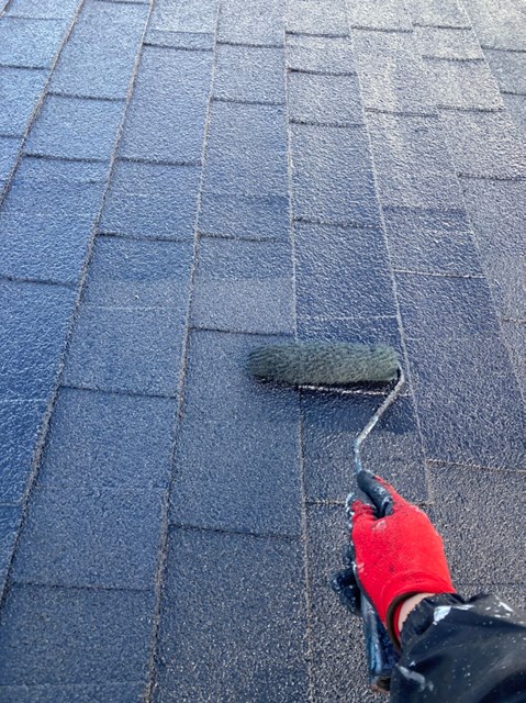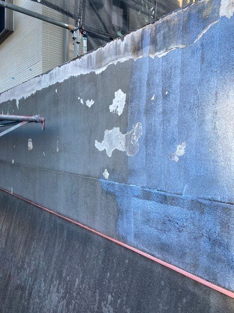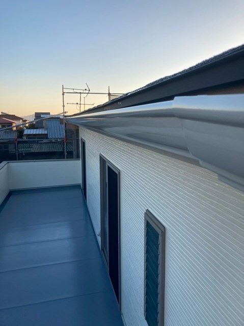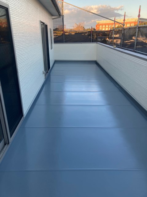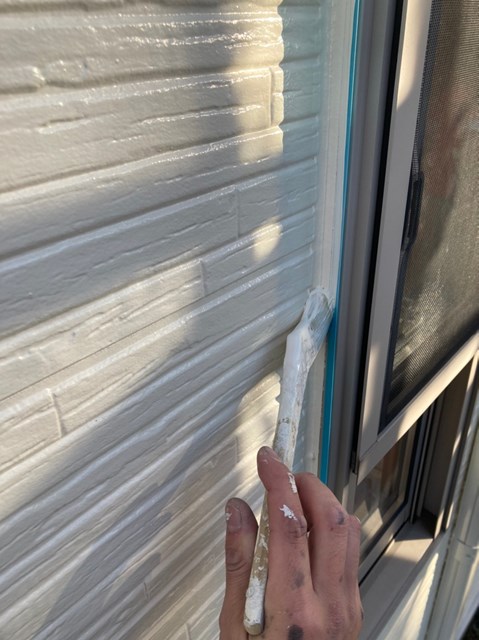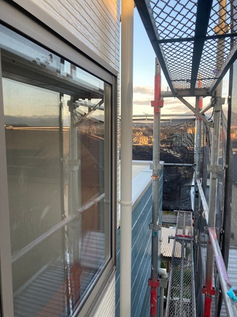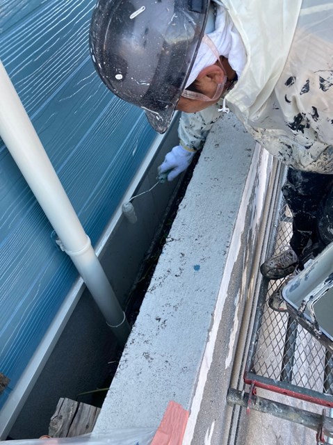 本日は付帯部塗装、バルコニー塗装、屋根の上塗り、道路面の塀の下塗り、各所、手直し、タッチアップ