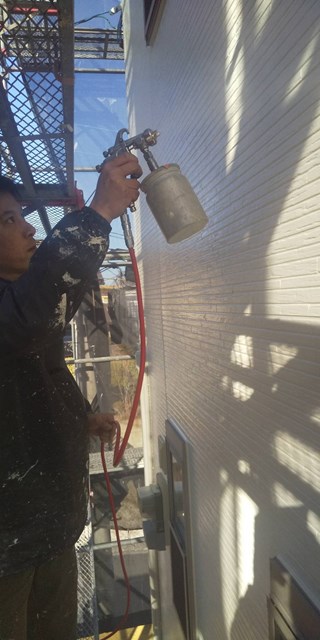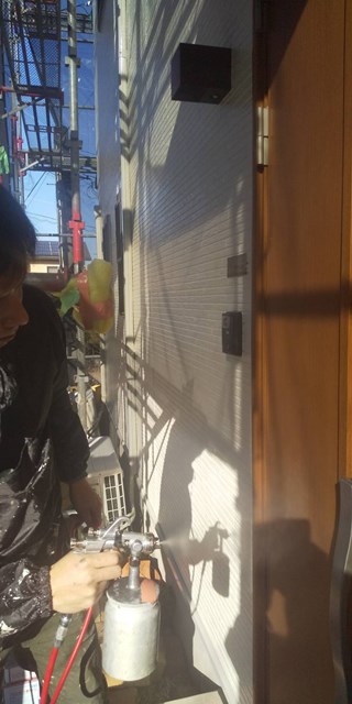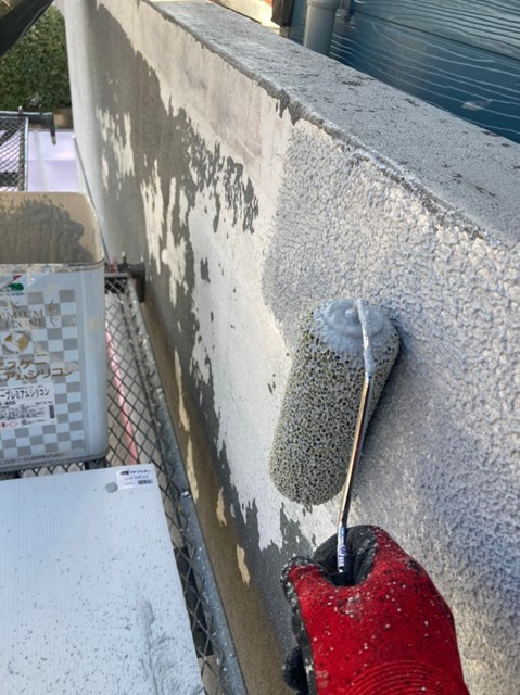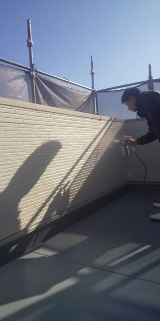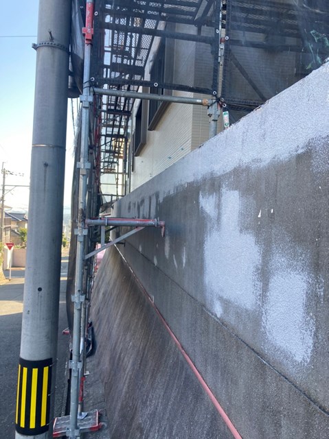 付帯部塗装、道路面塀の肌合わせ、各所、手直しタッチアップ、掃除