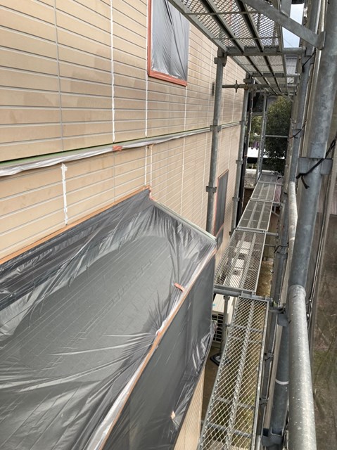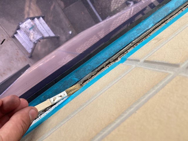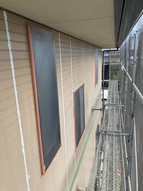 本日は各所、養生作業、一部、窓枠周りなどのコーキング処理、ガスケットのプライマー塗り