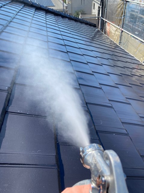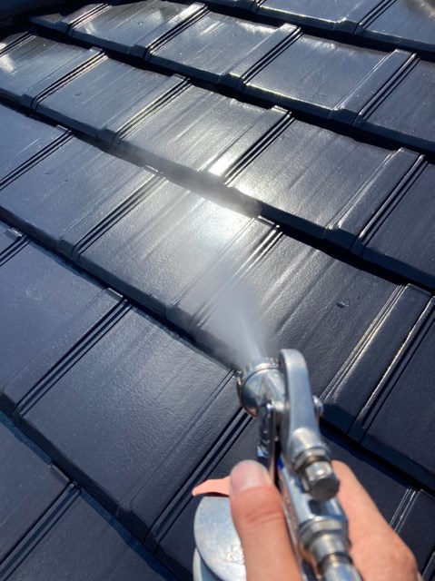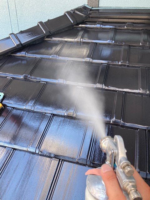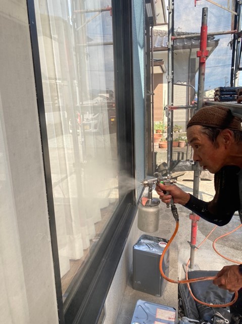 外壁、屋根にも専用の可視光線型光触媒を隈なくコーティングしていきました。