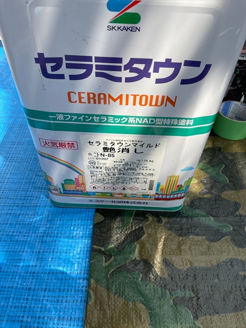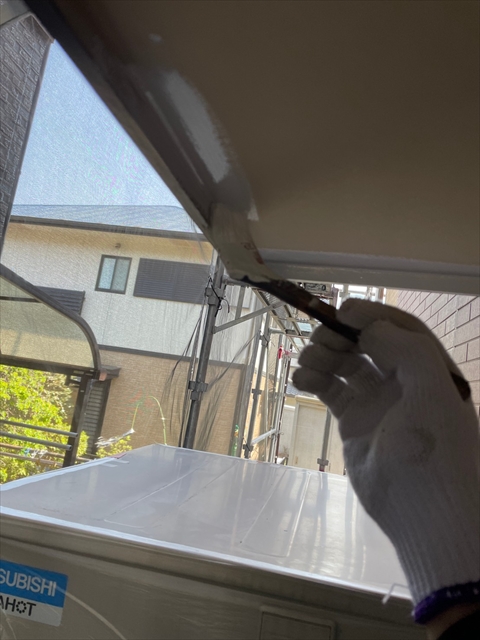 明日はシリコン止めプライマー塗り、外壁の下塗り、上塗り等を行う予定です。