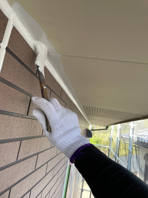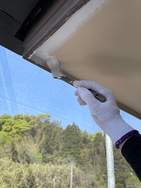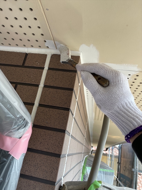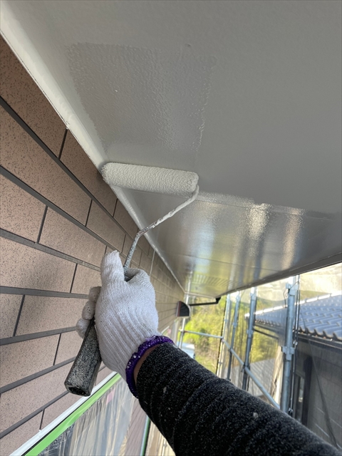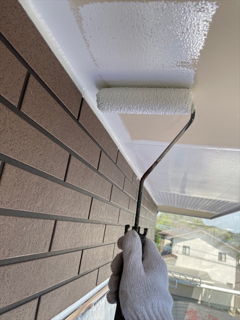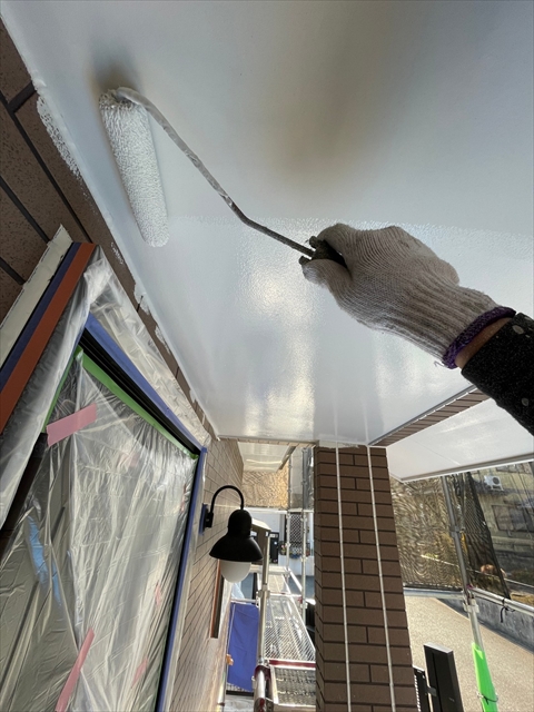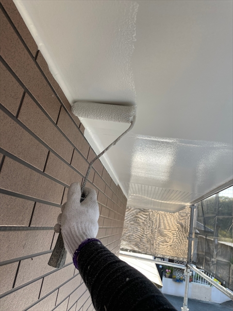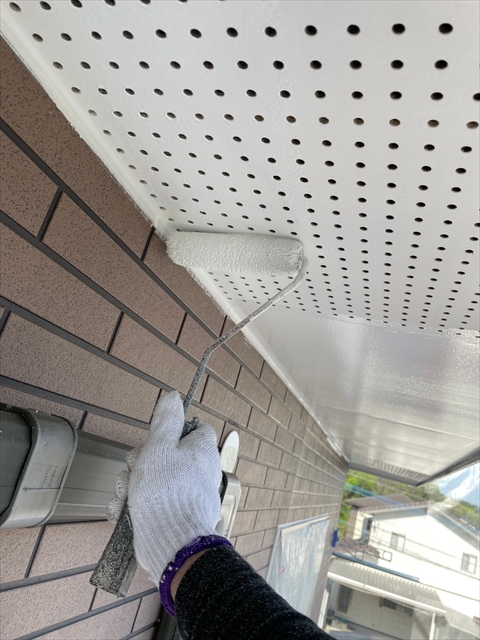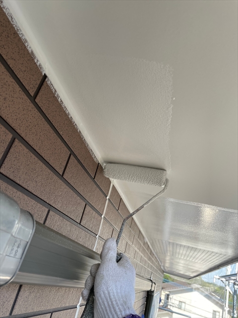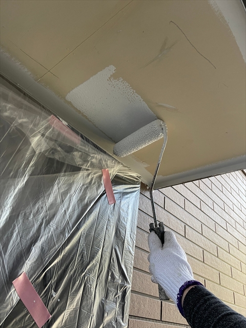 鳥栖市 M様邸 軒天塗り 上塗り(一回目、二回目)