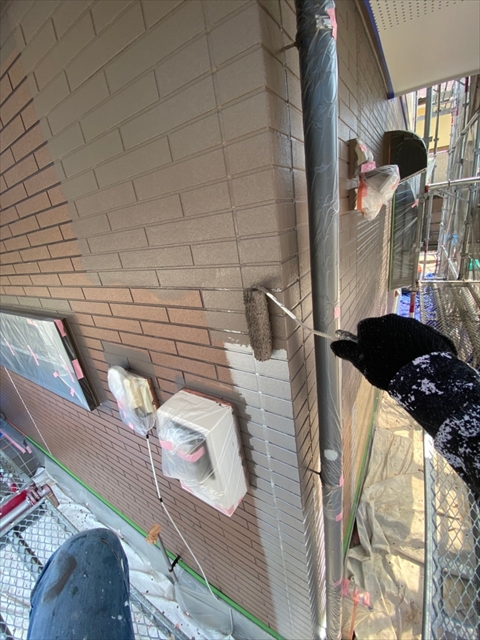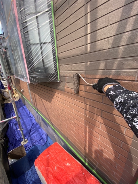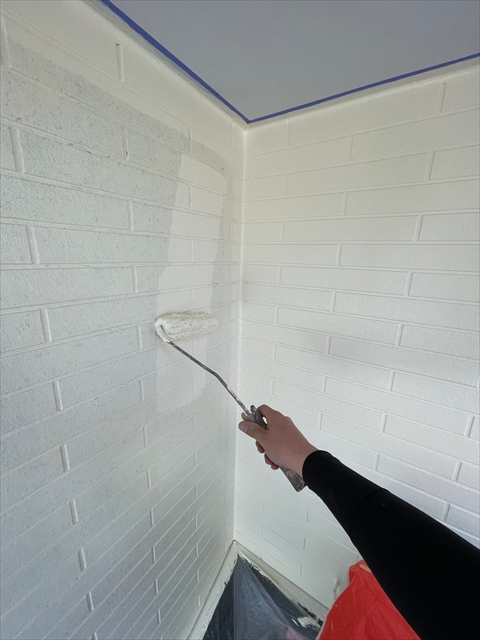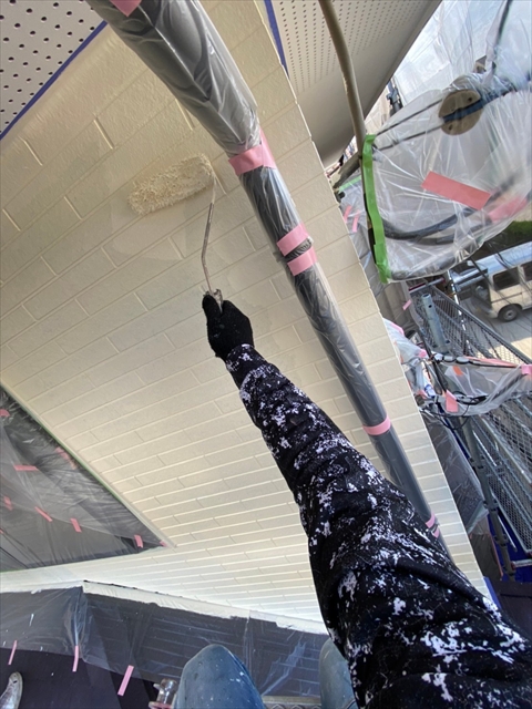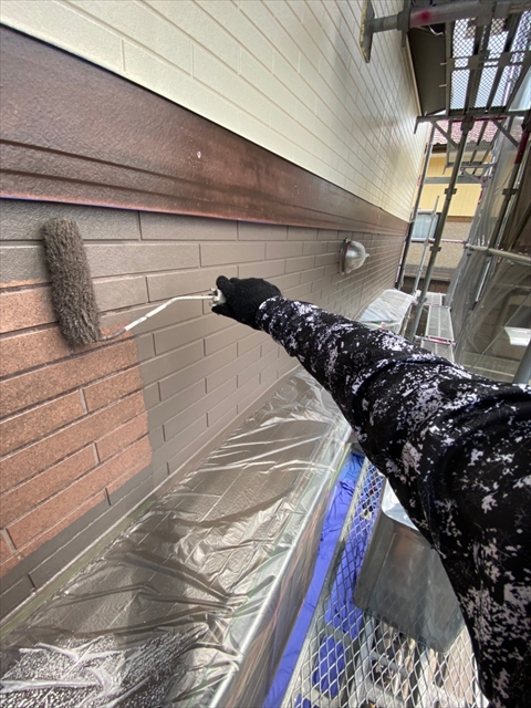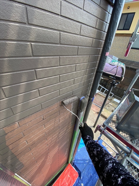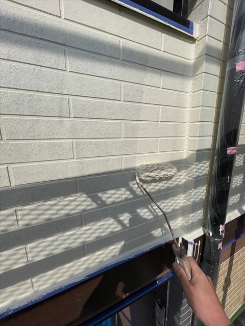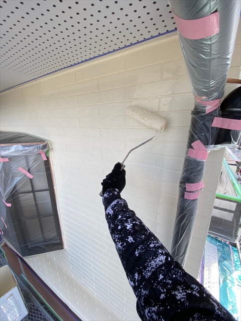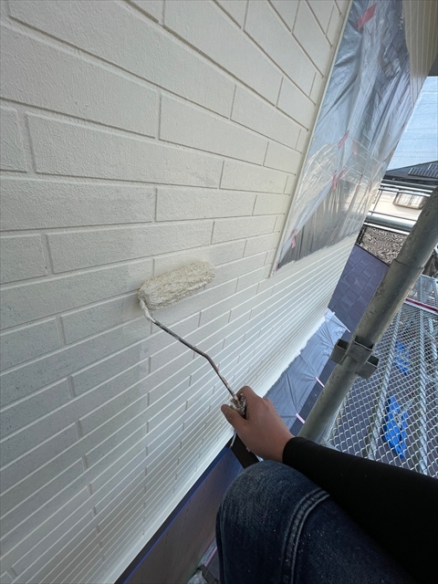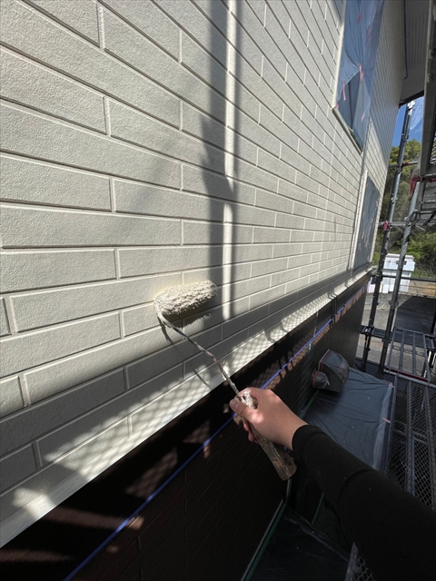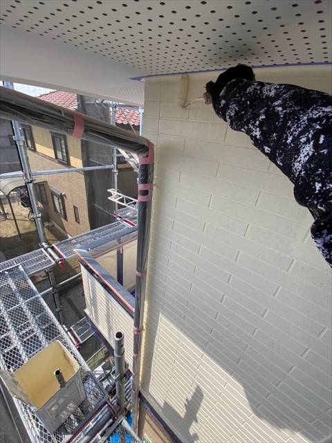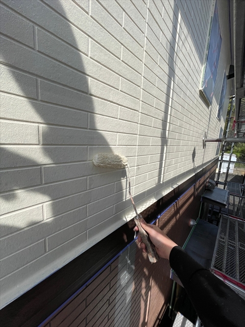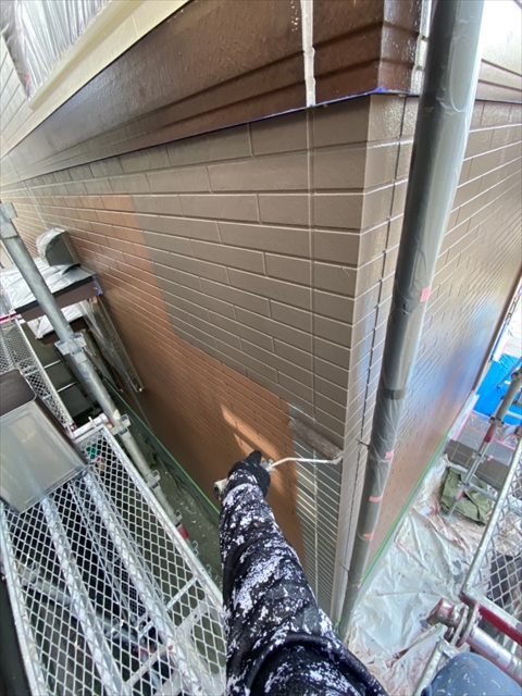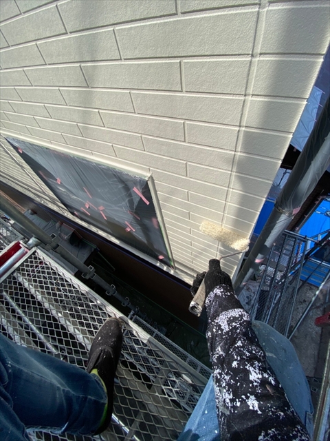 本日は2F外壁上塗り、1Fの上塗り(一回目)を行いました。