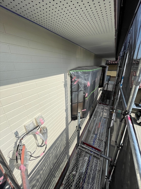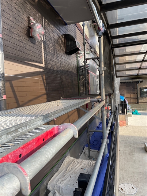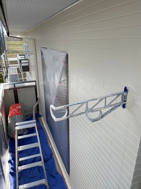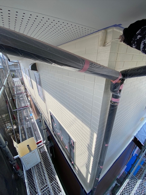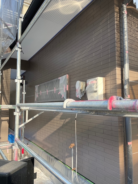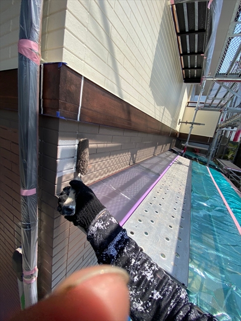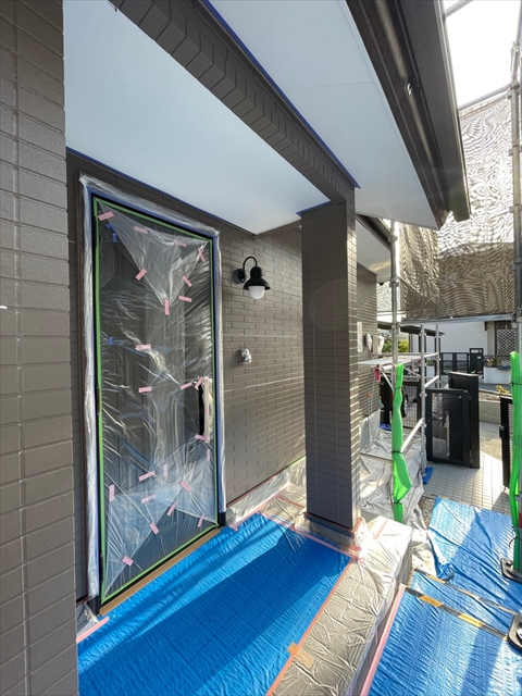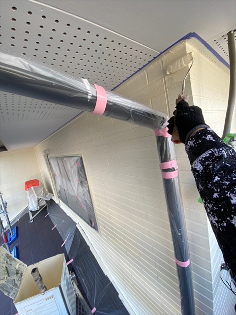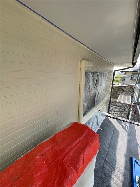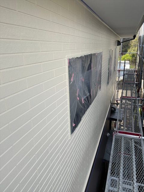 明日は1Fの上塗り二回目と養生剥ぎ、2Fの破風板等の上塗り作業を行います。