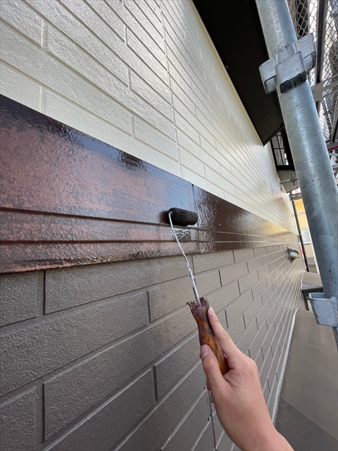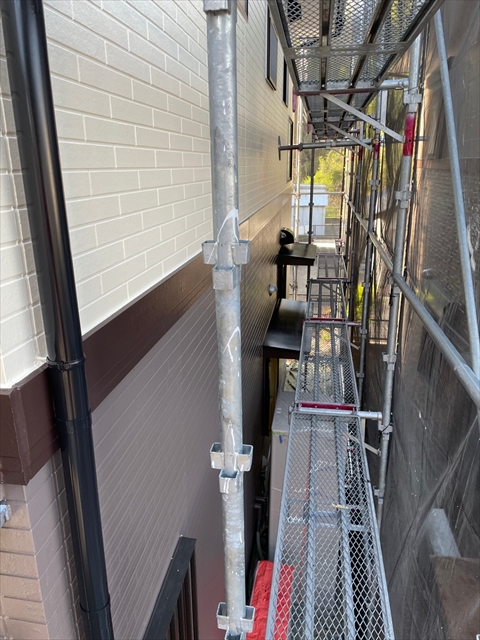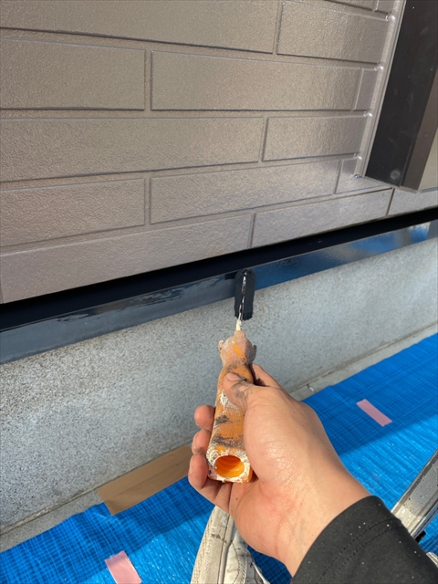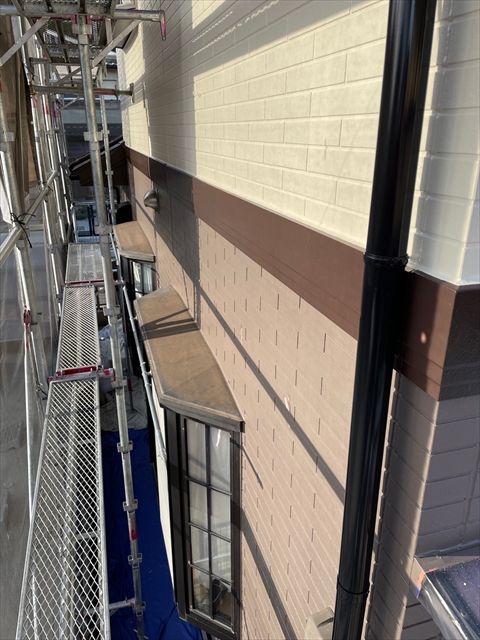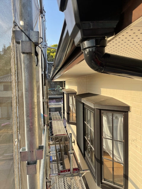 明日は縦樋、水切り等上塗り(二回目)、サッシ周りのライン出しを行います。