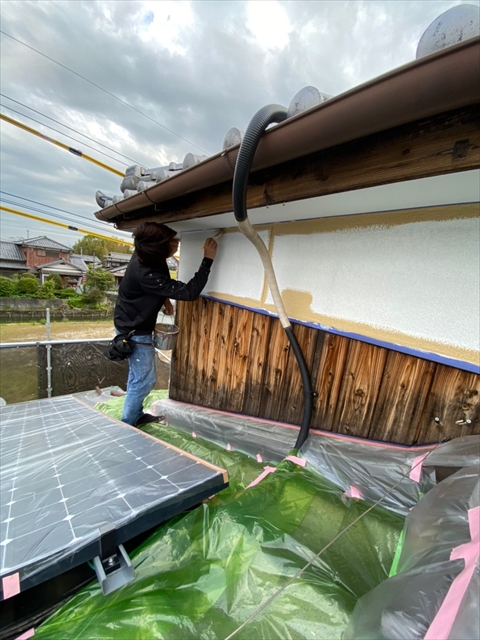 柳川市 T様邸 2F軒天塗り 壁の下塗り 上塗り(一回目) 木部軒天塗り 2021 4/27 2021年4月27日 本日は2F軒天塗り、壁の下塗り、上塗り一回目、木部軒天塗りを行いました。 次回は壁の上塗り二回目、木部軒天の続きと木部の壁の塗装を行う予定です。 施工現場ブログ よかったらシェアしてね! URLをコピーしました! URLをコピーしました!