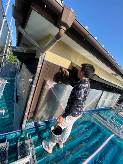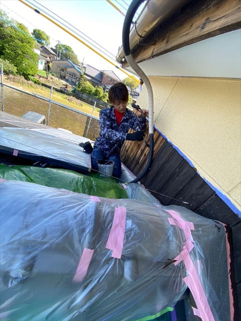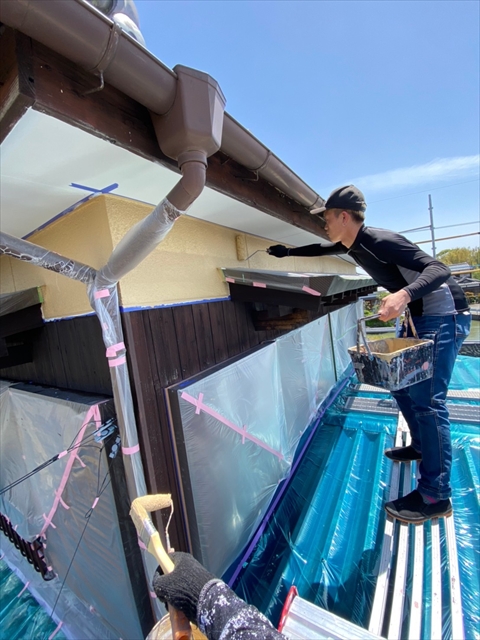 柳川市 T様邸 2F外壁の上塗り 木部の軒天 壁 (一回・二回目) 2021 5/01 2021年4月30日2021年5月1日 本日は2F外壁の上塗り、木部の軒天、壁の一回・二回目を行いました。 施工現場ブログ よかったらシェアしてね! URLをコピーしました! URLをコピーしました!