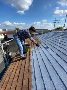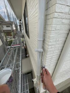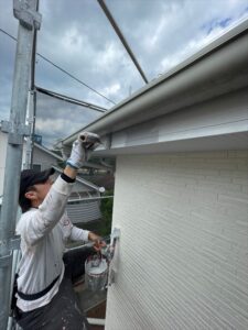 1F軒天塗りを行います。