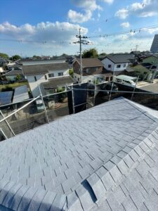 本日は2F破風板、横樋、大屋根の下塗り、1Fの養生等を行いました。