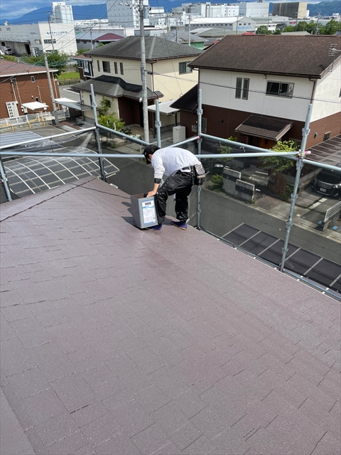 明日は下屋根の上塗り、1F水切り、破風、樋の上塗り作業を行う予定です。
