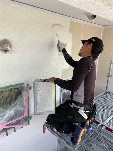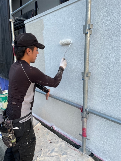 本日は1F外壁の下塗り、木部塗りを行いました。