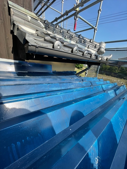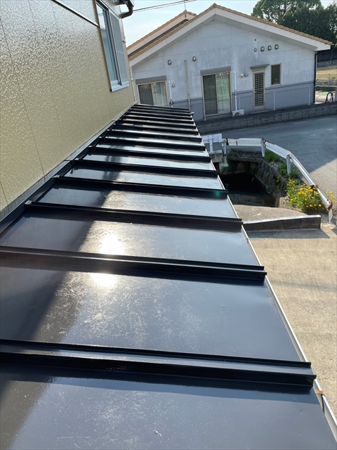 柳川市 T様邸 縦樋 横樋 色変え部 瓦棒屋根塗り