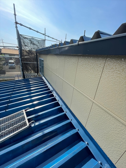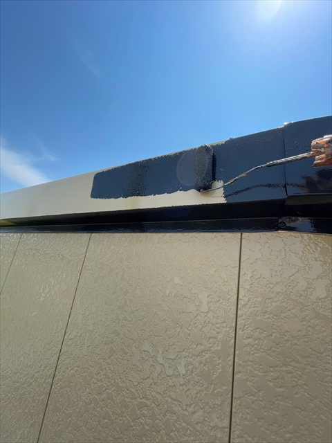 本日縦樋、横樋、色変え部、瓦棒屋根塗りを行いました。