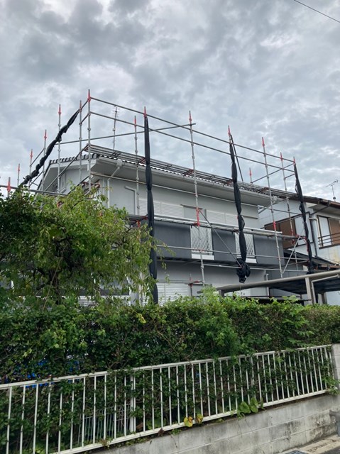 本日は足場の台風養生を行いました。