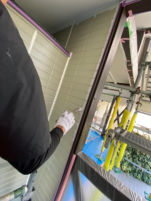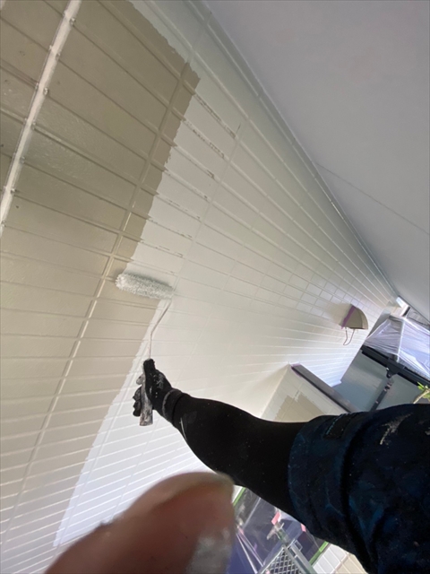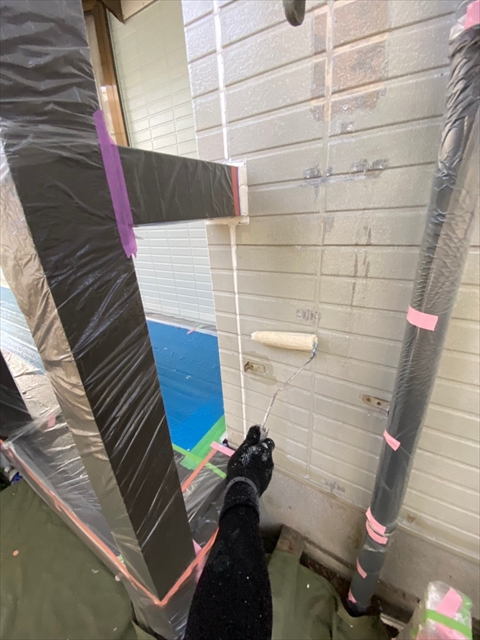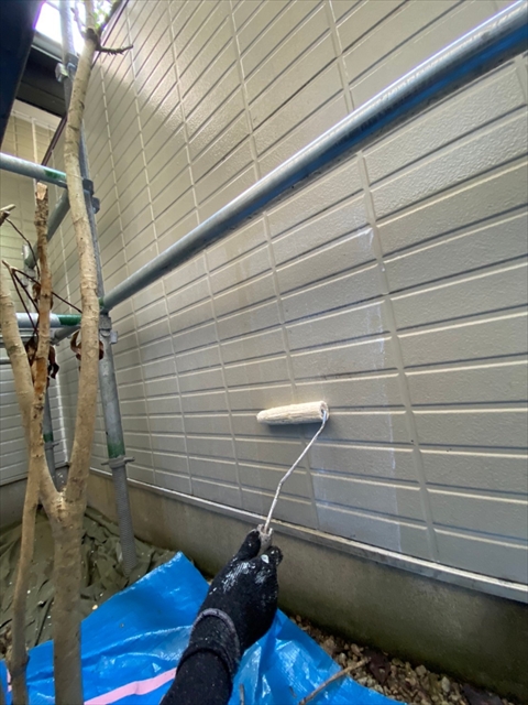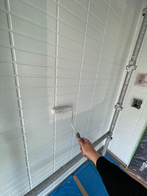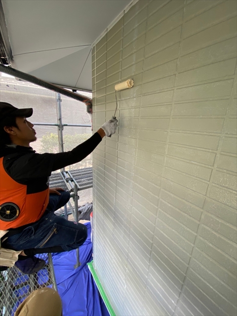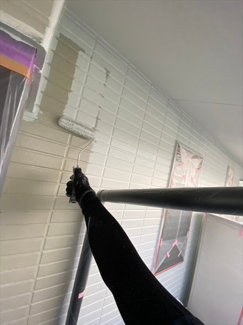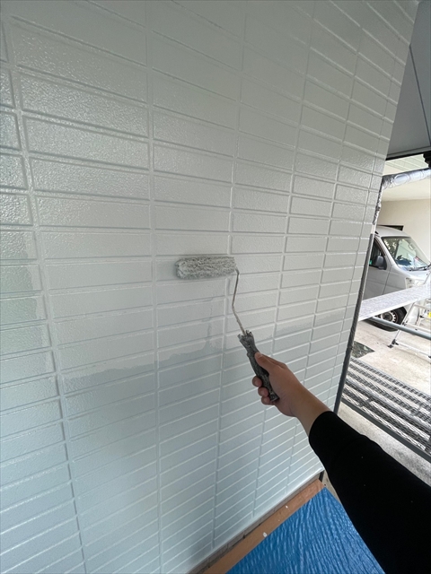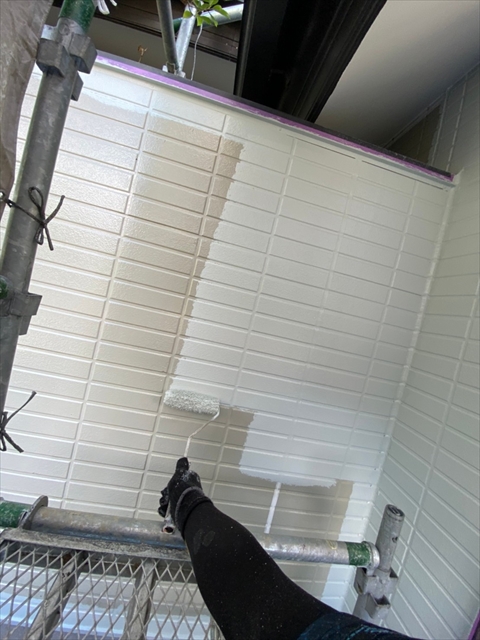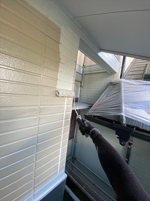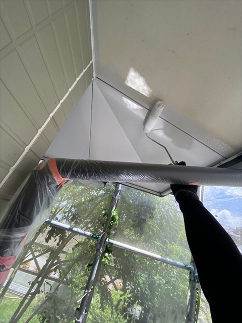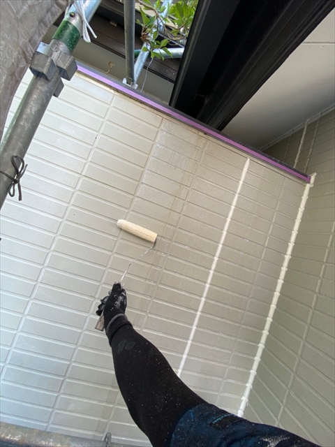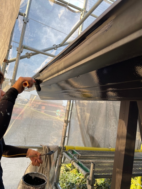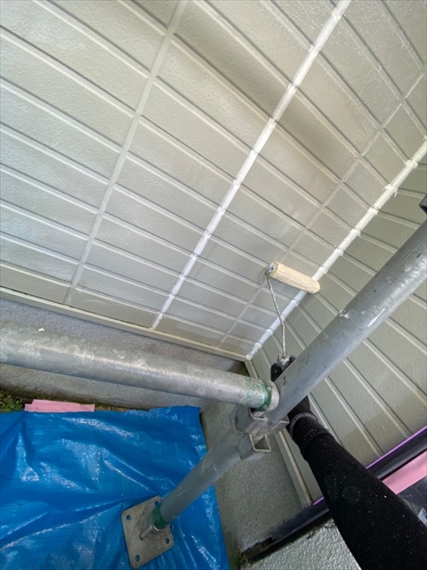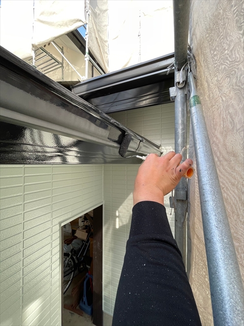 作業内容は下屋根上塗り、1F外壁上塗り、縦樋塗りを行う予定です。