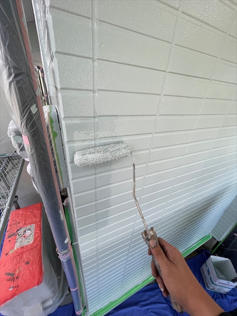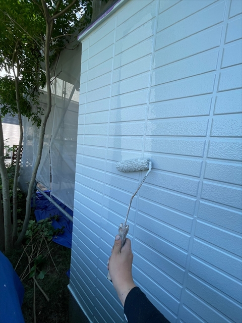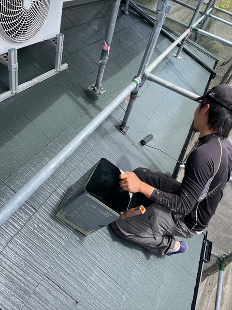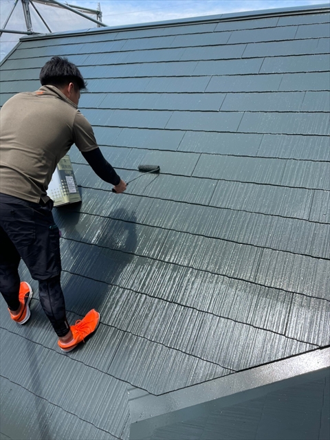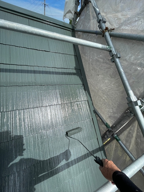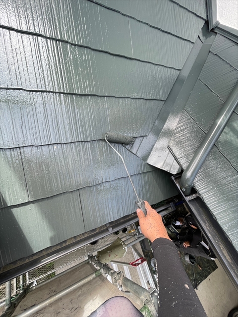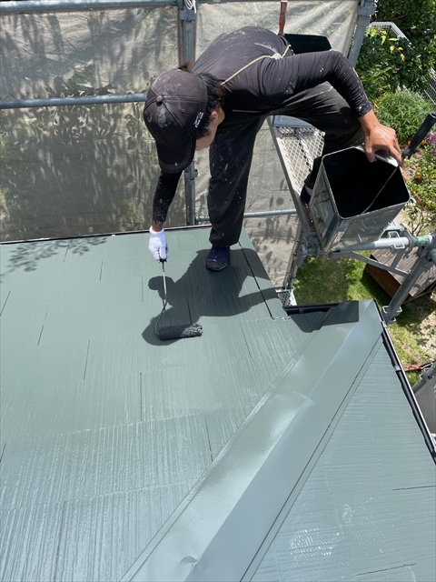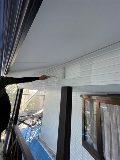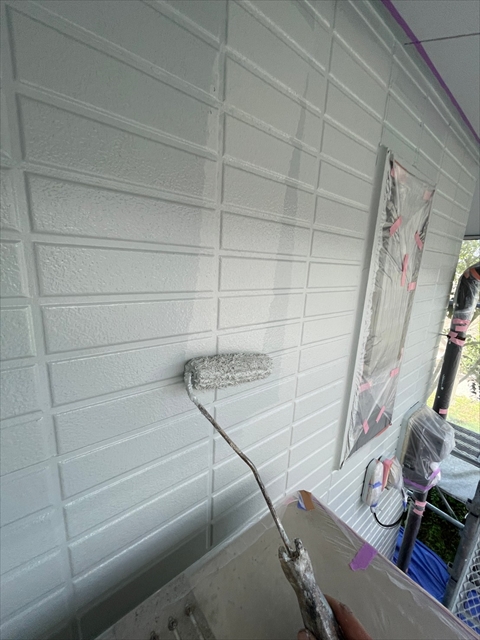 柳川市 T様邸 下屋根 1F外壁上塗り
