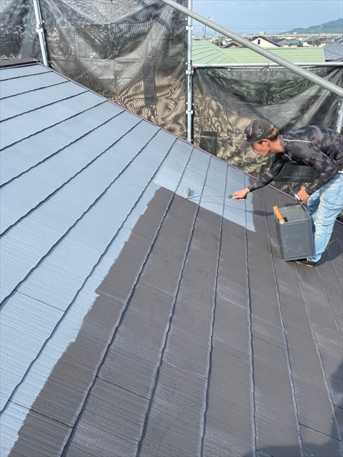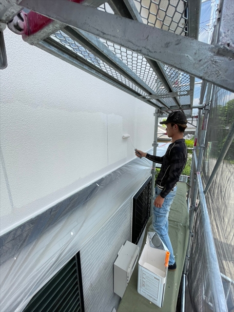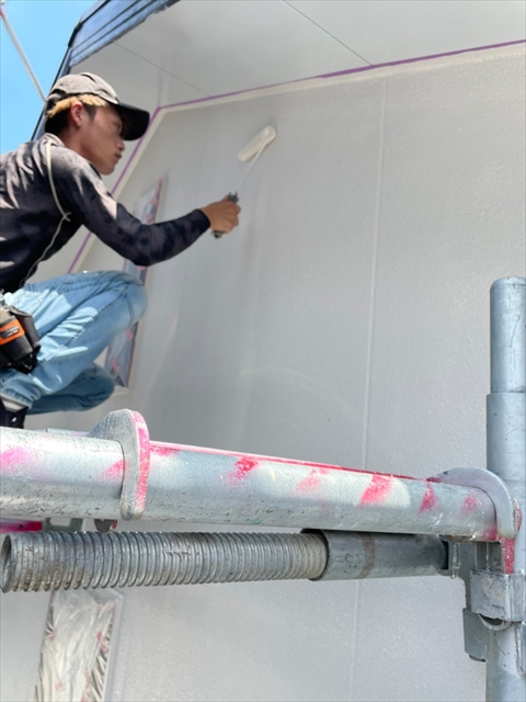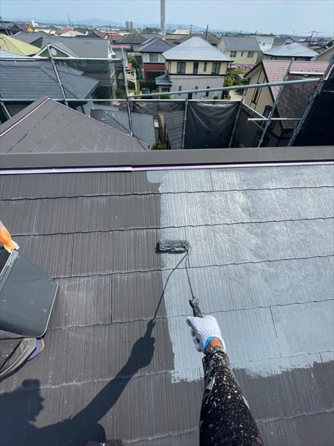 久留米市 A様邸 2F外壁の中塗り 上塗り 本屋根の下塗り 2021 6/25 2021年6月24日2021年6月25日 本日は、2F外壁の中塗り、上塗り、本屋根の下塗りを行いました。 明日は、本屋根の中塗り、上塗り2Fの付帯部塗装を行う予定です。 施工現場ブログ よかったらシェアしてね! URLをコピーしました! URLをコピーしました!