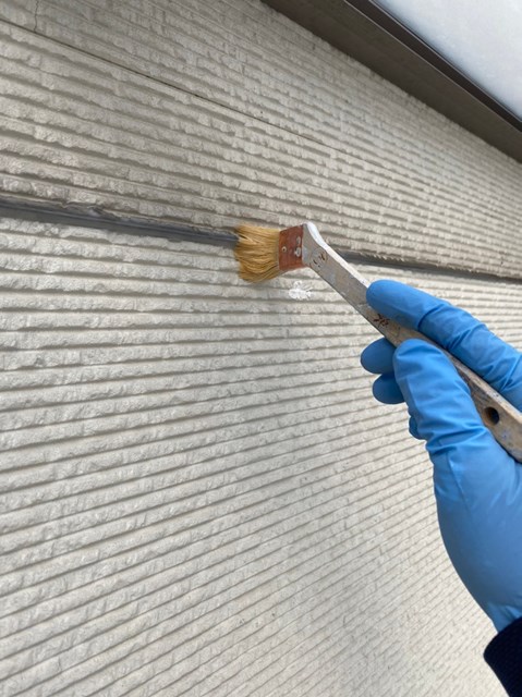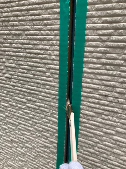 撤去後、プライマーを目地に添付し