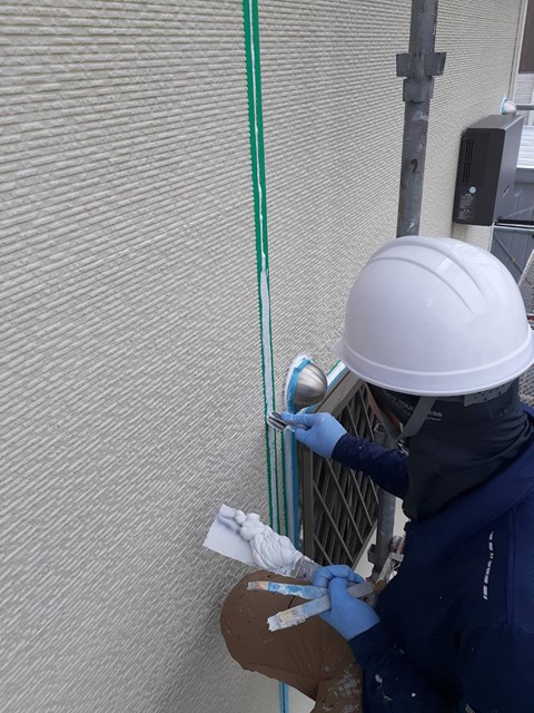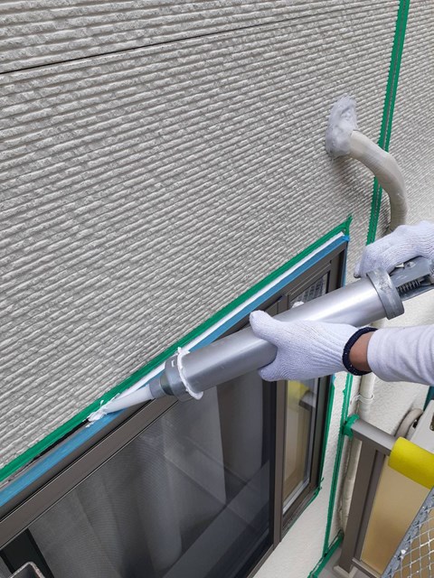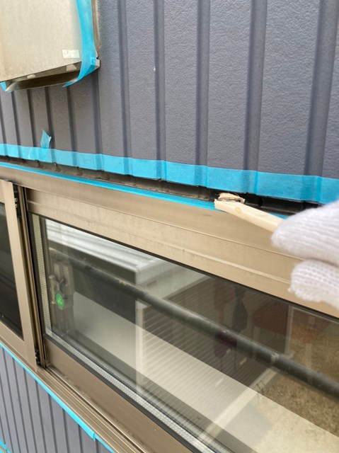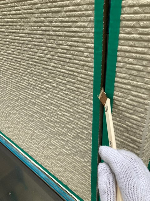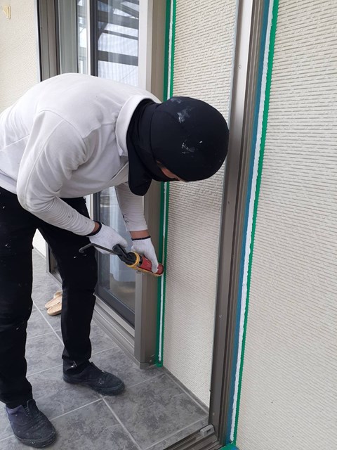 密着性を高めてからコーキングの打ち替え作業を行いました。
