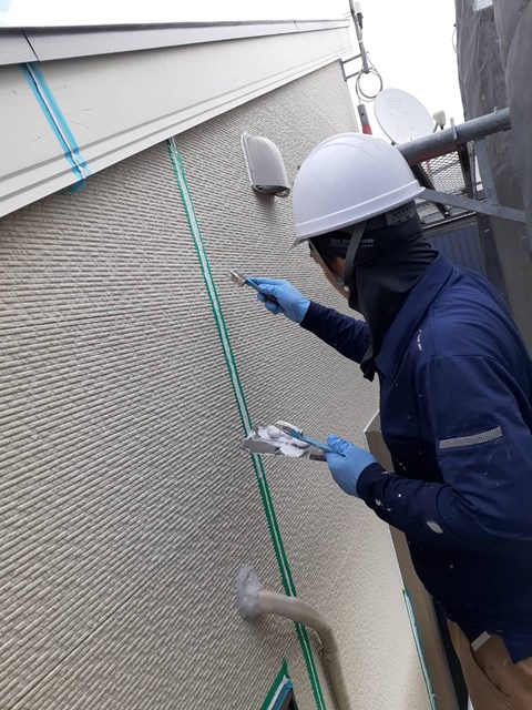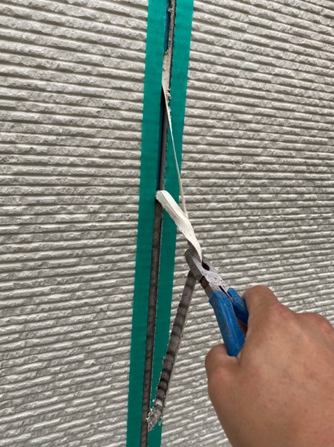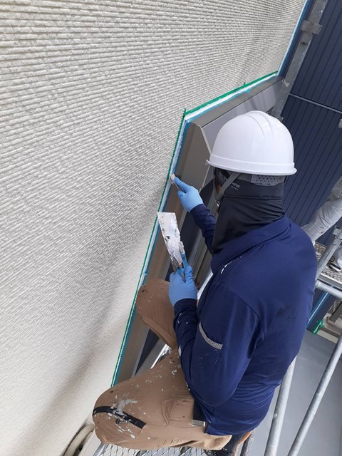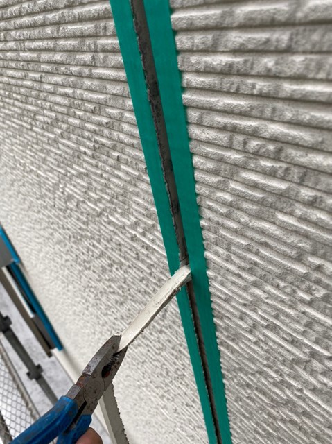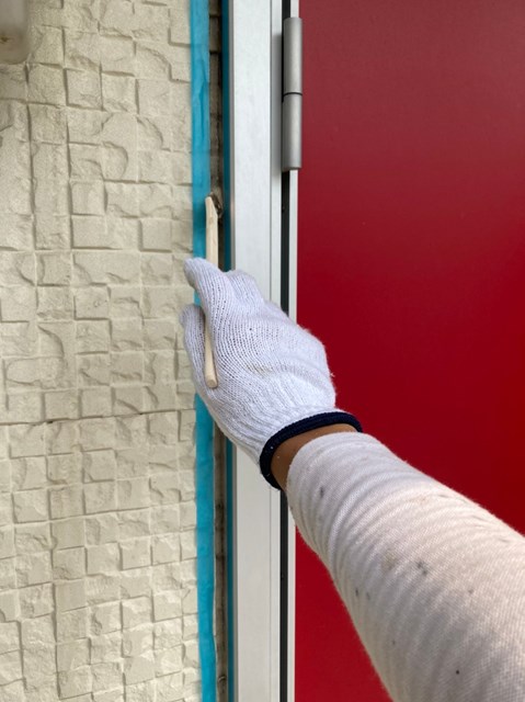 本日はコーキングの撤去、打ち替え作業を行いました。