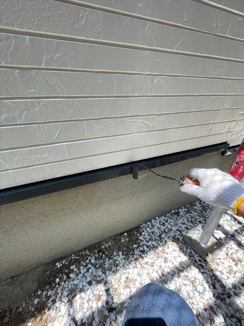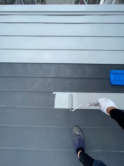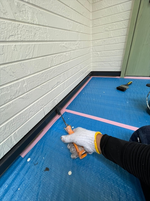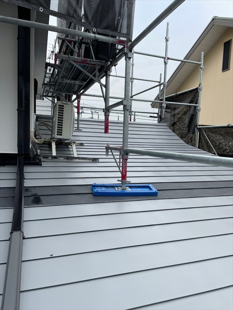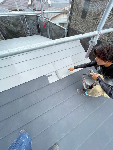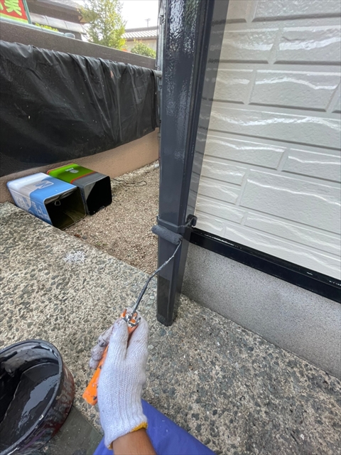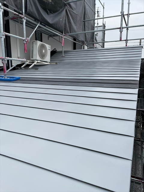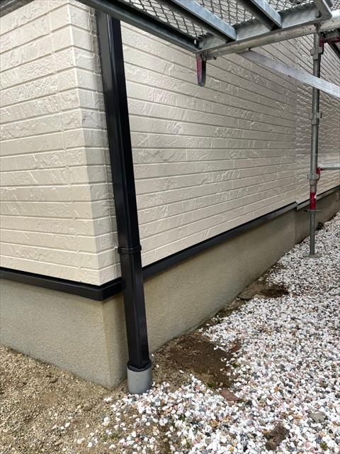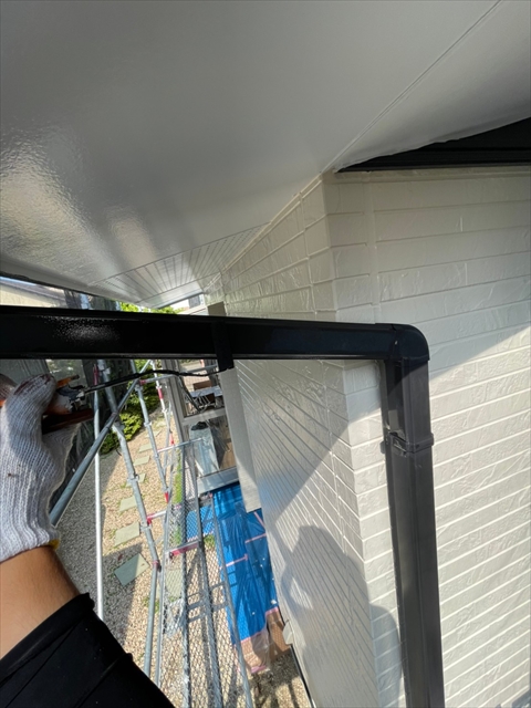 本日は、水切り板金、縦樋、下屋根下塗りを行いました。