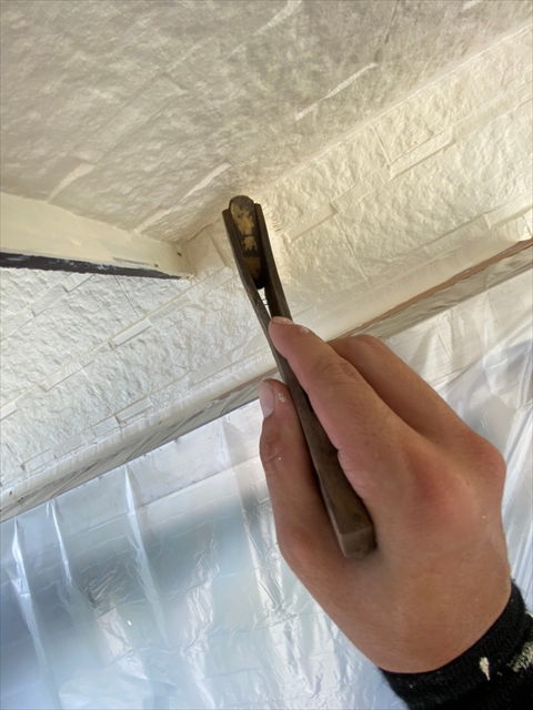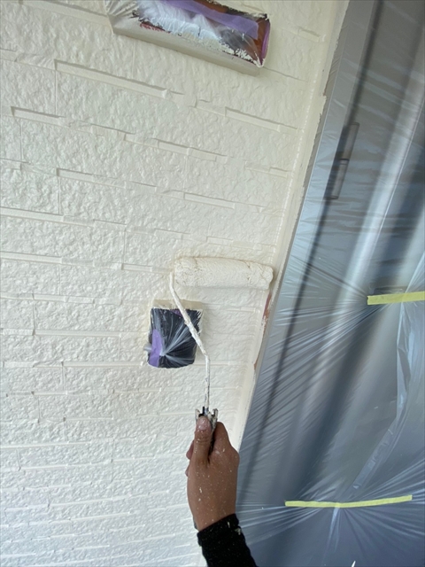 本日は、南面の壁上塗り塗装、養生剥ぎを行いました。