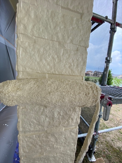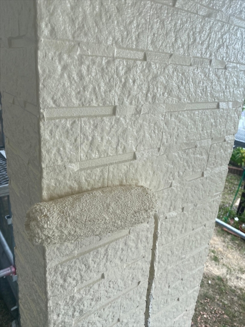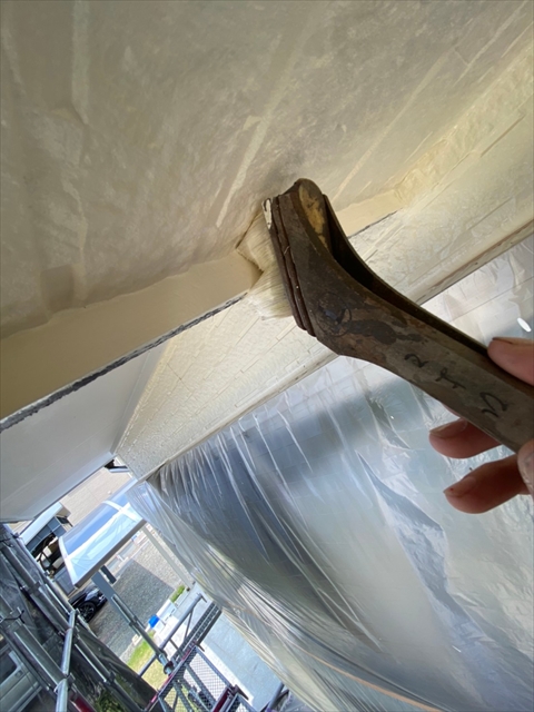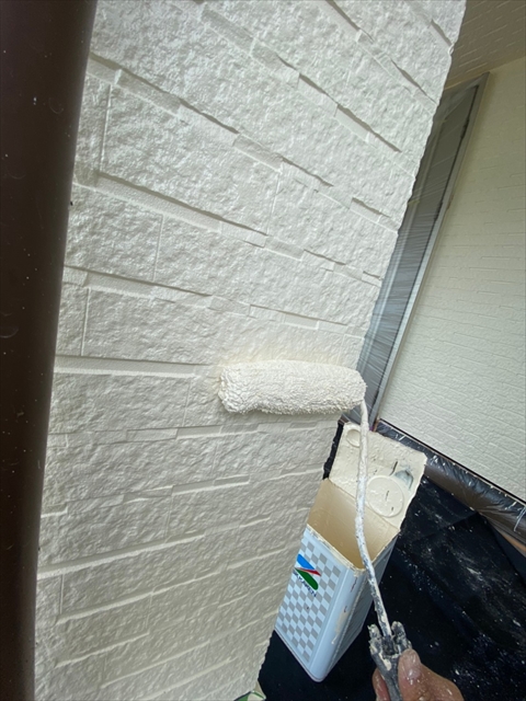 小城市 Y様邸 南面の壁上塗り塗装 養生剥ぎ