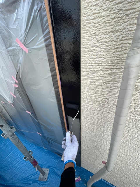 A様邸 バルコニー周辺の色替え部分の中塗り・上塗り、破風板・横樋・バルコニー笠木・水切り板金・シャッターボックスの塗装 2021 7/25 2021年7月24日2021年7月25日 本日はバルコニー周辺の色替え部分の中塗り・上塗り、破風板・横樋・バルコニー笠木・水切り板金・シャッターボックスの塗装を行いました。 次回は北・南面の外壁上塗りを行う予定です。 施工現場ブログ よかったらシェアしてね! URLをコピーしました! URLをコピーしました!