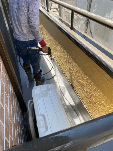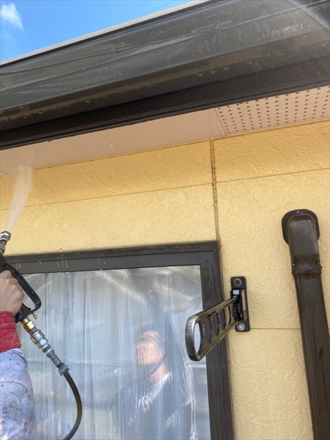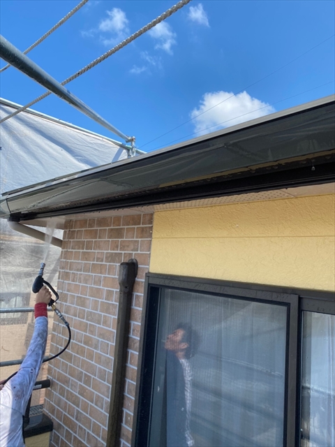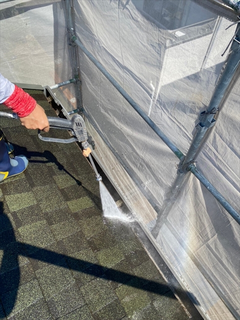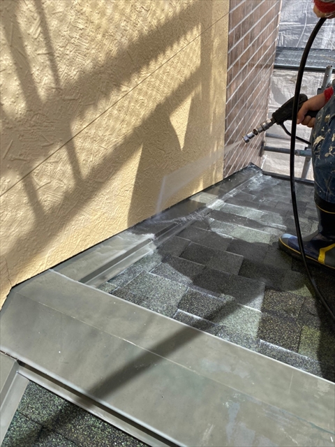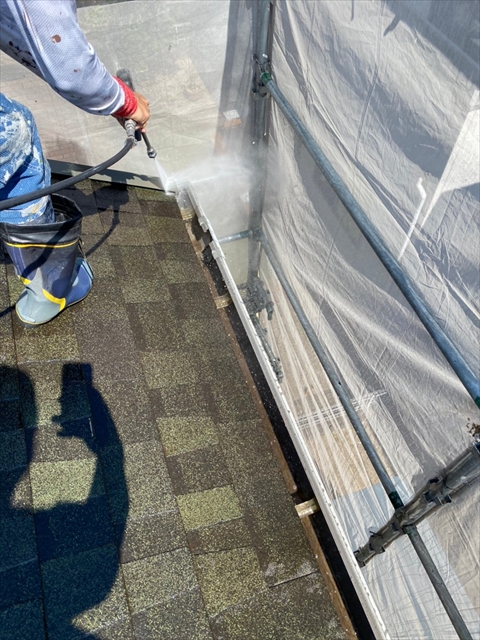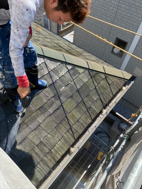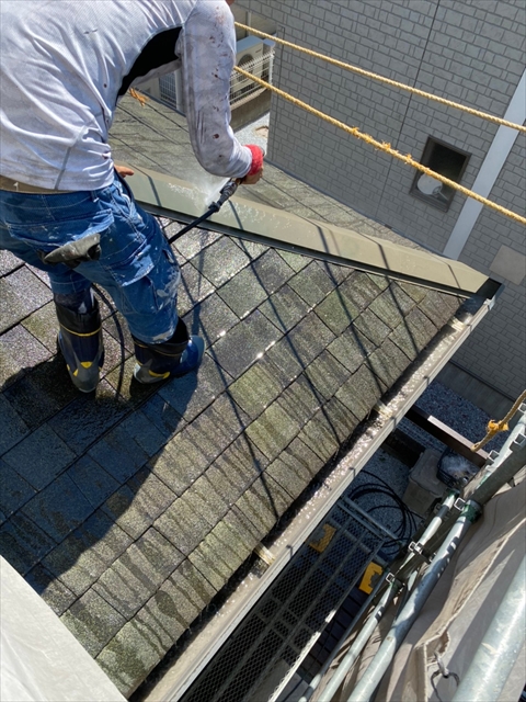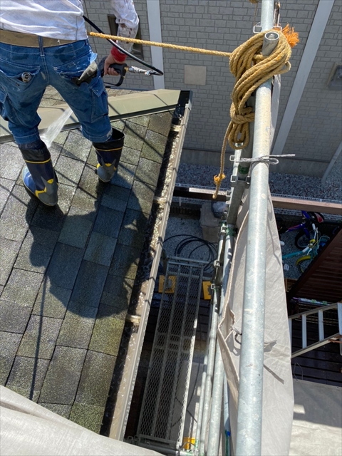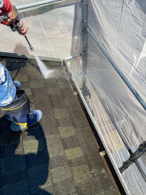 明日はコーキング撤去、コーキング打ち、屋根下塗りを行う予定です。